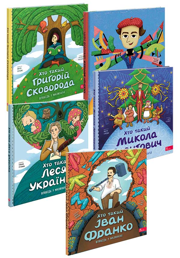 Кожна книжка — це коротка, зрозуміла історія про життя і творчість визначних постатей української культури, подана в доступній формі через малюнки, діалоги та цікаві факти.